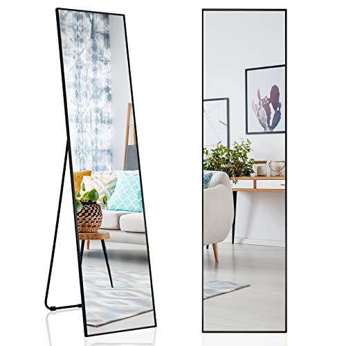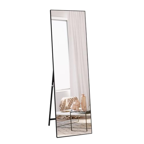 BEAUTYPEAK 76 x 180 cm, extra stor helkroppsspegel, stående spegel, hängande eller lutande mot väggen, stor golvspegel med stativ för sovrum, vardagsrum eller omklädningsrum, svart
