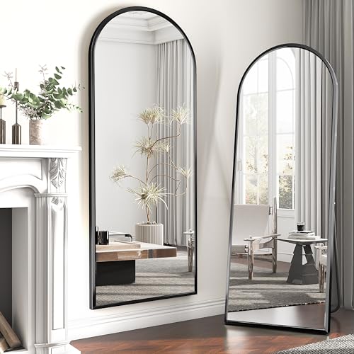 VEVOR Välvd hellängdsspegel, 152 cm x 56 cm, stor fristående lutande hängande väggmonterad golvspegel med stativ ram av aluminiumlegering, helkroppsspegel för vardagsrum sovrum, svart