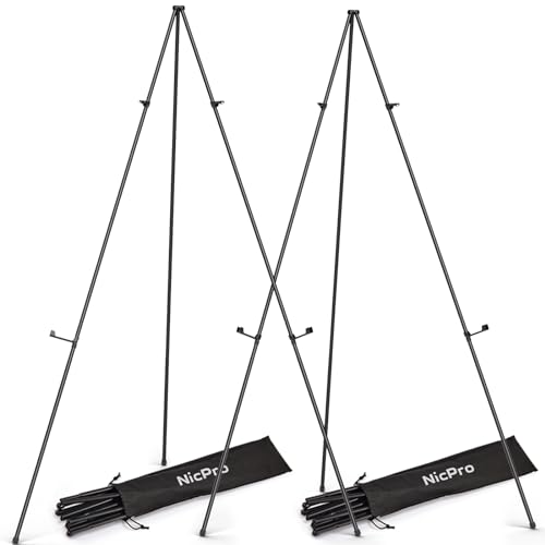 Nicpro Fällbara stafflier för skärm, 2-pack 153 cm golvstaffli i metall, stativ svart, bärbart för konstnärsaffisch, bröllop med bärväska