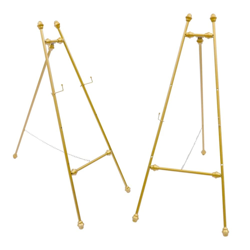Bröllopsskyltställ - Golvstaffli i metall - 2-pack - Justerbar lutning - Fast krok 7 cm & tvärstång 45 cm - Max 5 kg - Halkfria fötter - Guld