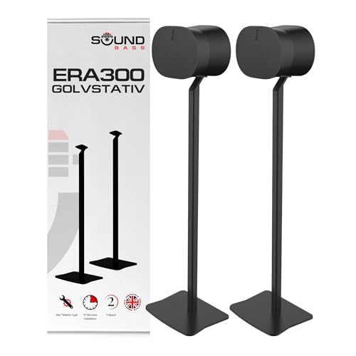ERA300 Golvstativ, Premiummaterial i Metall, Tvåpack (2st), Svart, Kompatibel Med Sonos ERA 300 Högtalare, Tillbehör Ingår, Kabelhantering, Designad i Storbritannien, Dubbel, Par