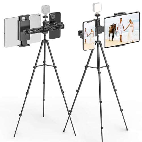 iPad Stativstativ, Höjdjusterbart Golvstativ för Surfplattor 62,99", med Vridbart 1/4" Kulhuvud, iPad Golvstativ med 2 Hållare för Livestream Littande för iPad Pro, iPad Air, 4,7-12,9" Surfplattor