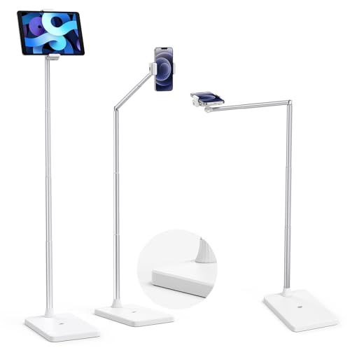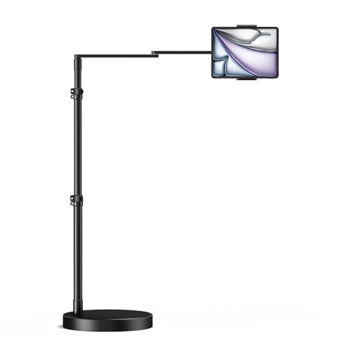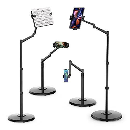 LanPavilion Golvstativ för surfplatta med uppgraderad viktad bas, justerbar arm surfplattestativ telefonhållare för säng soffa användning, kompatibel med iPad Pro, Air, iPhone, Samsung Tab, Kindle,