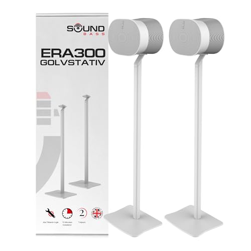 ERA300 Golvstativ, Premiummaterial i Metall, Tvåpack (2st), Vit, Kompatibel Med Sonos ERA 300 Högtalare, Tillbehör Ingår, Kabelhantering, Designad i Storbritannien, Dubbel, Par