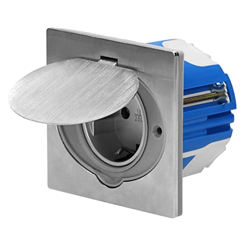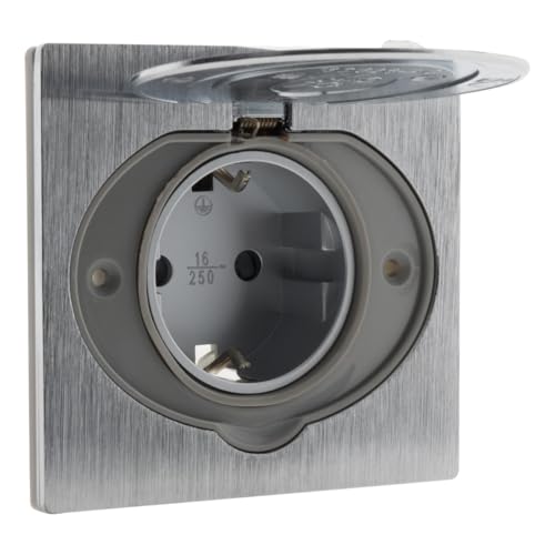 Inbyggt uttag i rostfritt stål, golvuttag IP44, gångjärnslock, pluggklämma, vindtät strömbrytardosa