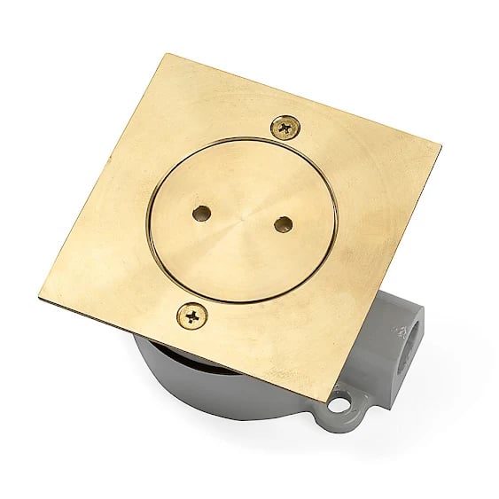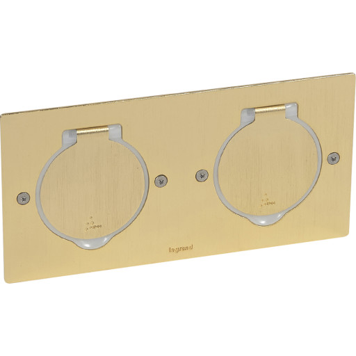 Golvuttag tom rund 2 moduler mässing