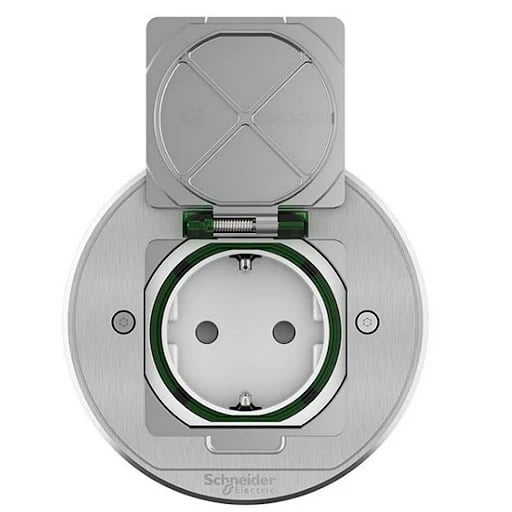 Schneider Electric Golvuttag XS rund IP44, c/c 60 i metall ett jordat uttag