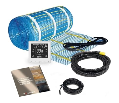 Flexithermo™ Standard elektrisk golvvärme, komplett set, värmeeffekt 150 W/m² (2,0 m x 0,5 m; 1 m²) elektrisk golvvärme, för golv av alla slag, inkl. digital termostat med veckoprogram