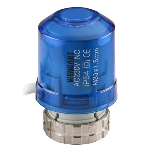 Wengart värmesystem ställdon WG02, AC230 V M30 x 1,5 ventil på- och av-status med 360 graders LED-indikering, normalt stängd, för golvvärme termostat, blå