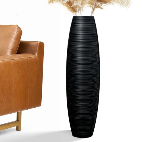 JIDOFUE Vintage keramik, svart golvvas, 60 cm, rustik boho-stil för pampasgräs, blommor eller dekor, perfekt för vardagsrum, entré eller bord