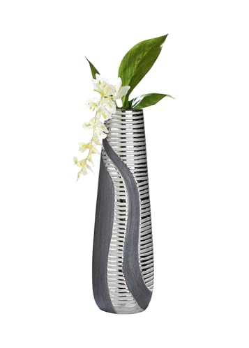 GILDE Modern dekorativ vas, blomvas, golvvas av keramik, antracit, silver, höjd 49 cm