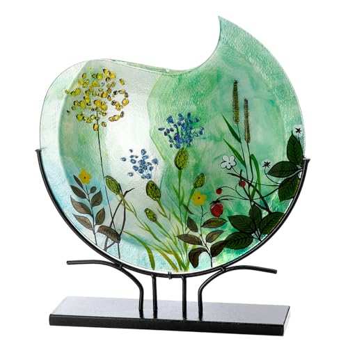 Glas konst golvvas vilda blommor i glas – rund – flerfärgad – glänsande – höjd 48 cm x bredd 50 cm – inte vattentät – handmålad