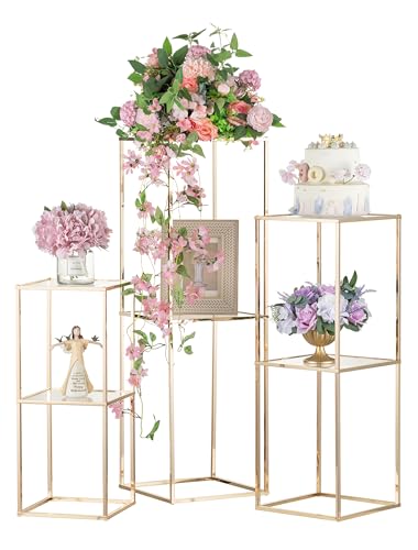 Inweder Guldblomstativ mittpunkter: 3 st metallväxtstativ med akrylpanel 40/60/80 cm hög golvvas för bröllopsbord – geometrisk golvhylla för födelsedagsfest, årsdag, vardagsrumsdekor