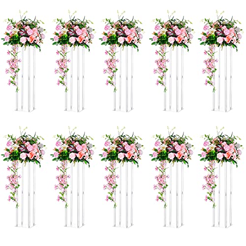 Nuptio 10 St Bröllopsbord Centrepieces Vas 80cm Långa Akrylblommor Golvvas Kolumn Blomsterarrangemang Stativ Geometriska Rektangulära Display Rack för Bröllop Fest Dekoration
