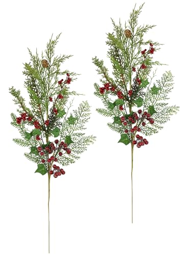Konstgjord bärgren, dekoration, gren med bär, kottar, murgröna, grangrenar, set om 2, 75 cm stora AST blommor, konstgjorda grenar för adventskkransar, kransar, golvvas, juldekoration blomster,
