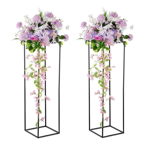 Inweder Blomstativ bröllop mittpunkter: 2 st svarta kolumnvaser med metallpanel 80 cm hög golvvas för bord mittpunkten geometrisk växt piedestal för halloween födelsedagsfest heminredning