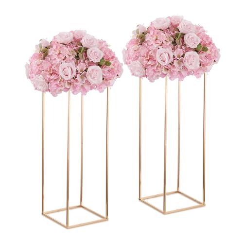 Sziqiqi Guld Bröllopscentrum Metallvaser - 2st Höga Blomsterarrangemang Displayställ Geometrisk Golvvas För Blomsterställ Rektangulärt Bordsställ För Bröllop Förlovningsfestdekoration, 80 Cm
