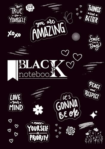 Black Notebook Positive Vibes: You are Amazing | Be true to Yourself | Smile each Day | It`s gonna be Ok | 7x10in with 120 Black Lined Pages