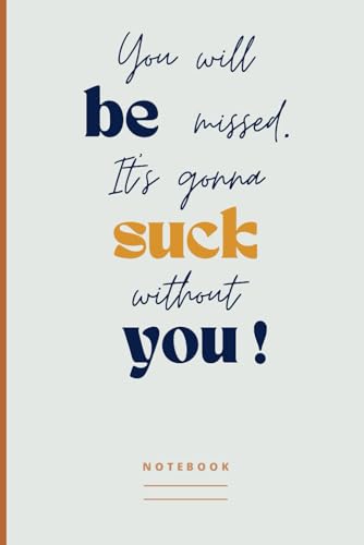 You will be missed. It's gonna suck without you! Notebook: Blank Lined Journal With Funny Saying on the Cover | A Friendly Gift for a Colleague Who Is Retiring or Moving to a New Job