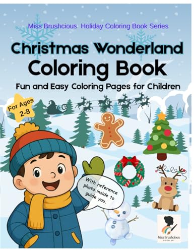 Miss Brushcious Holiday Coloring Book Series, Christmas Wonderland Coloring Book: Fun and Easy Coloring Pages for Children: Over 20 Bold and Easy ... | Good for markers | with Reference photo