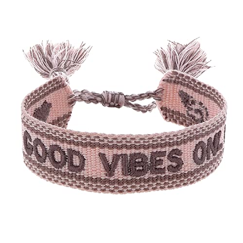 Engelsrufer Damen Armband aus Polyester und Baumwolle in rosa dunkelrot mit GOOD VIBES ONLY Stickerei - Kordelverschluss - größenverstellbar