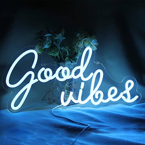 LED-neonskylt med ”Good vibes”, för väggdekor, 5 V, USB-driven med dimbar strömbrytare, sovrum, fest, restaurang, bar, pub, hotell, fritidsdekoration, blå (40 x 19 cm)