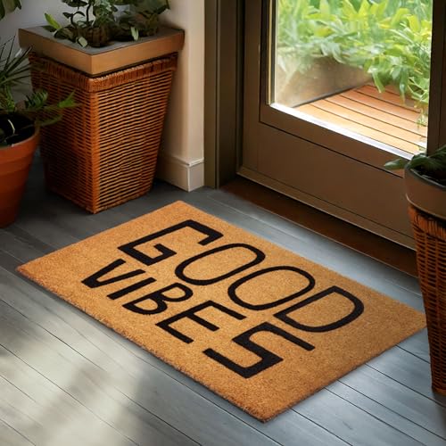 BRUBAKER Dörrmatta för Utomhus- och Inomhusbruk - Good Vibes - 45 x 75 cm Smutsavskiljande Matta av 100% Kokos - 3D Kokosmatta Väderbeständig och Halkfri - Entrématta för Ytterdörr och Terrass - Brun
