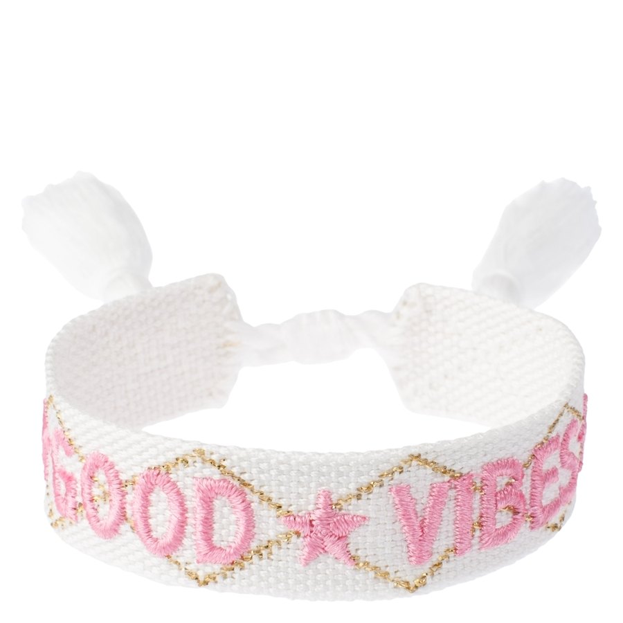 DARK Woven Friendship Bracelet "Good Vibes" White with Bubblegum