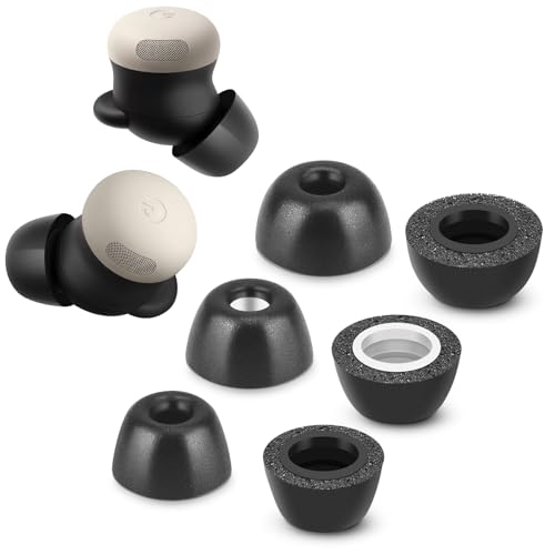 Minnesskumspetsar för Google Pixel Buds Pro, halkfria ersättningsöronspetsar för Google True trådlösa hörlurar, passar i laddningsfodralet, perfekt brusreducering, 3 par (blandade storlekar, svart)