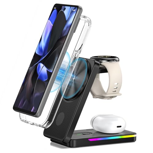 Magnetisk trådlös laddare för Google Pixel Watch 3/2, Mag-safe laddningsstation för Pixel 9 Pro XL/9/8a, 3-i-1 hopfällbar Pixel-laddningsstation för Pixel Buds Pro 2 (inte för Pixel Watch 1)
