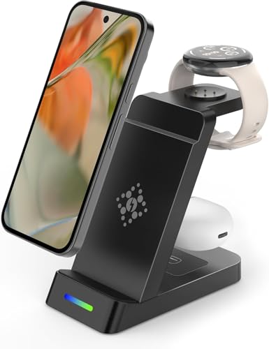 Trådlös laddare för Google Pixel Watch 3/2, 3 i 1 stativ för trådlös laddningsstation för Pixel 9/9a/8a/8/7/6/5/4/3, Fitbit Versa 4/3 & Pixel Buds Pro