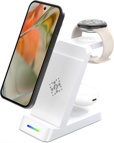 SPGUARD Trådlös laddare för Google Pixel Watch 2 (inte för Google Pixel Watch (2022)), 3-i-1 trådlös laddningsstation för Google Pixel 7/7a/7 Pro/6/6 Pro/5/4/3/XL/Fold, Pixel BudsPro
