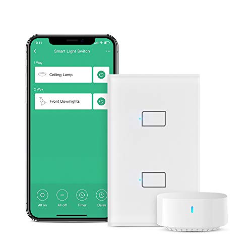 BroadLink Smart Touch-väggljusbrytare, 2-gängs enstaka live-switch, fungerar med Alexa, Google Home och IFTTT, Hub krävs (med Hub)