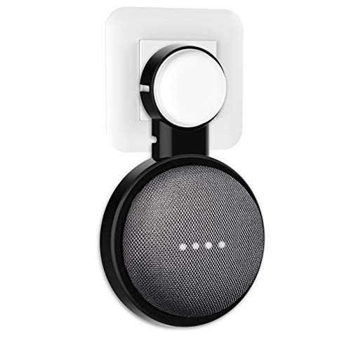 PlusAcc väggfäste för Google Nest Mini eller Home Mini, hållare stativ med integrerad kabelhantering, perfekt för sovrum, badrum och kök, inga skruvar krävs (svart)
