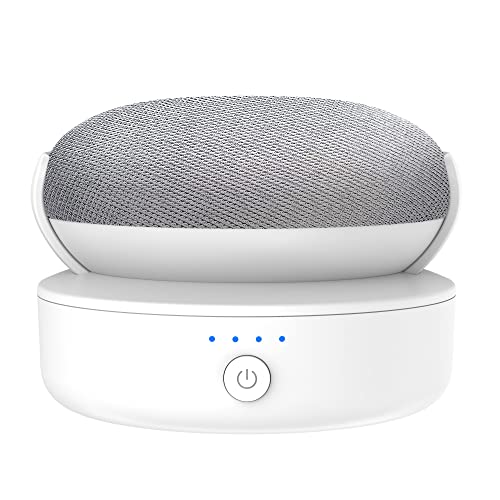 PlusAcc batteri kompatibel med Google Nest Mini – bärbart utomhusbatteri dockställ tillbehör för kök och trädgård, strömförsörjning 9 timmars speltid (enhet ingår ej) vit