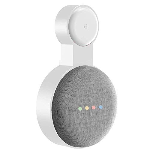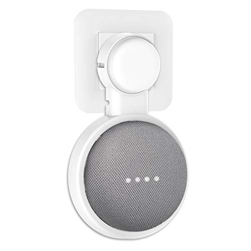 PlusAcc väggfäste för Google Nest Mini eller Home Mini, hållare stativ med integrerad kabelhantering, perfekt för sovrum, badrum och kök, inga skruvar krävs (vit)