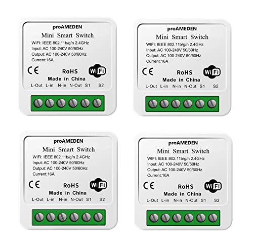 ProAMEDEN Apple HomeKit 16A Wifi Smart Switch [4/en] MINI Smart Switch Wifi, Switch Module, CozyLife app fungerar med Siri röststyrning, Alexa kompatibel, Google Home