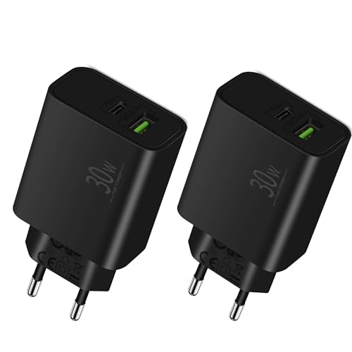 LUOSIKE 30W USB C-Laddare med Extra USB-A-Port -Svart 2-Pack, USB C-Adapter/Strömadapter/Plugg, Snabbladdare Kompatibel med iPhone 15/14/13/12/Pro/Max/Plus/SE, Samsung S24/S23/S22, Google Pixel 8/7/6