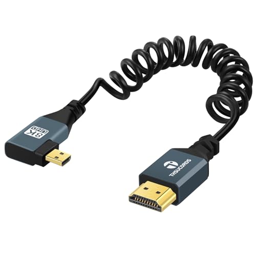 Thsucords 8K Vänstervinkel Micro HDMI till HDMI Spiralsladd Kabel, 90 Graders HDMI till Micro HDMI Hane till Hane Spiralsladd, Stöder 8K @60Hz 4K @120Hz 48Gbps för GoPro Hero(90cm)