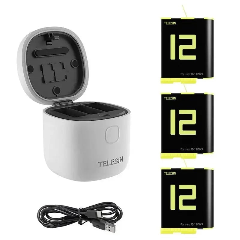 Telesin Batteriladdare allInBox med förvaring för batterier + microSD Läsare - Trippel - för GoPro Hero12/11/10/9 Black
