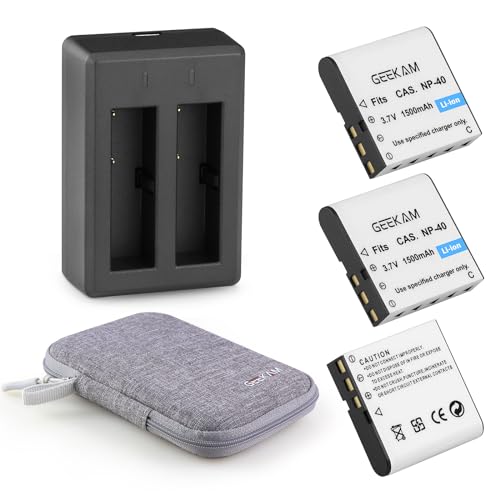 GeeKam CAS. NP-40 Battery Kit, 3 x 1500mAh Rechargeable Batteries with NP 40 Dual Charger for Video Camera Camcorders Compatible with Casio NP-40, Kodak LB-060, GE GB-60 (Not for Fuji Rollei NP40)