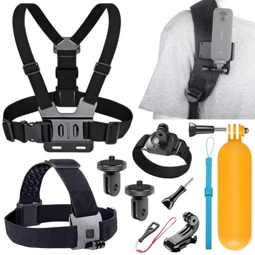 YEHOLDING 10-i-1 actionkamera tillbehörssats för Insta360 X4/X3/X2/Ace Pro/Ace, kompatibel med GoPro Hero, inkluderar bröstremsfäste, huvudrem, handledsrem, ryggsäcksklämma, flytande handtag
