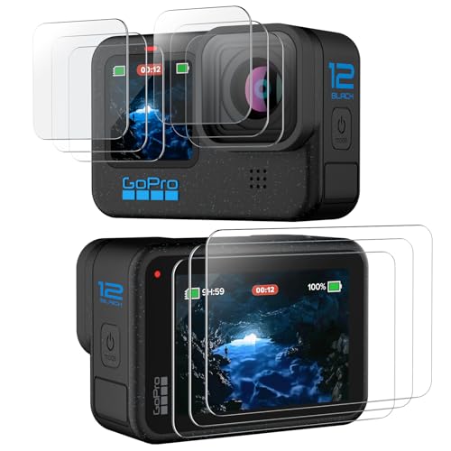JETech Skärmskydd för GoPro Hero 12/11/10/9 Black med Kameralinsskydd, Screen Protector Härdat Glas Film, Enkel Installation, HD Klar, 3-Pack Varje