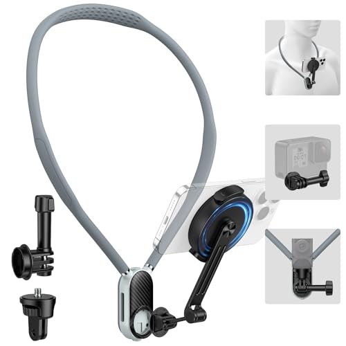 CAMOLO Magnetiskt nackfäste för telefoner och actionkamera, telefonhållare i nacken för inspelning av POV/Vlog, handsfree nackstativ bröstmontering för iPhone GoPro Hero 12 11 10 MAX DJI Action 4