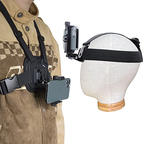 Suptig telefon bröstrem sele montering huvudrem hållare kit för POV/VLOG, mobiltelefonklämma för iPhone, Samsung, GoPro Hero 12,11,10, 9, 8,7, 6, 5, 4, 3,2, 1, AKASO, DJI Osmo Action Cam