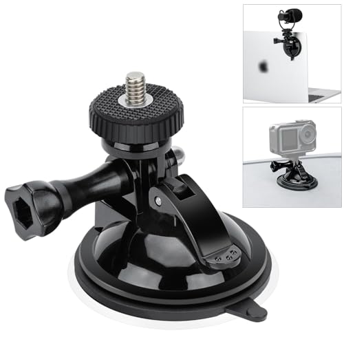 JJC Sugkoppshållare för GoPro Hero/DJI Osmo Action Camera Stand för bil instrumentbräda & för MIC LED och 1/4"-20 Gear på bärbara datorer och andra