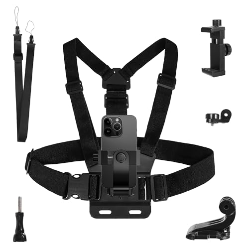 Bröstbältesfäste för GoPro & actionkameror – justerbart bröstbälte, ventilerande material, kompatibelt med GoPro Hero 13, Hero 12, Hero 11, DJI Osmo Action 5, Samsung, iPhone för POV/Vlog