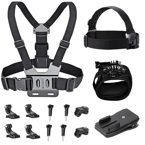 TEKCAM Bröstbälte huvudbälte handrem ryggsäckshållare, 4-i-1 justerbar actionkamera bröstbälte fästset kompatibel med Gopro Hero 13 12 11 10 9/DJI Osmo Action 5 Pro/Akaso