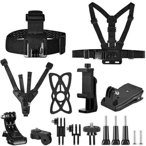 ShipeeKin Bröstrem Huvudrem Ryggsäckshållare Hjälm Hakmonteringssats med förlängningsarm, Justerbar Action Camera Cam Tillbehörssats för mobiltelefoner, Gopro Hero Series Insta360 GeekPro SJCAM etc