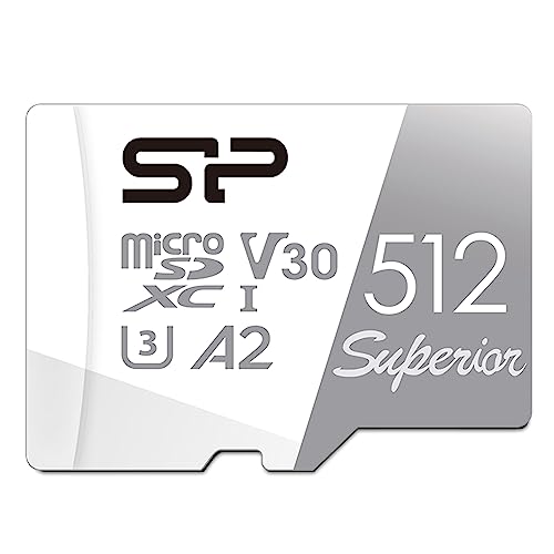 Silicon Power 512 GB Superior Micro SDXC UHS-I (U3), V30 4K A2, kompatibel med GoPro Hero 9 High Speed MicroSD-kort med adapter